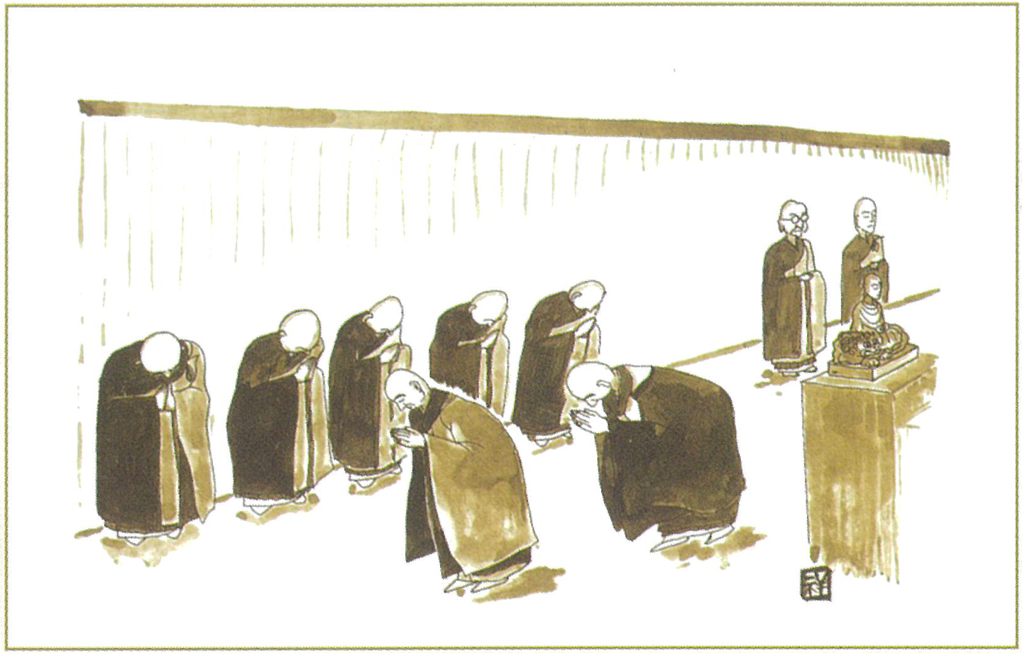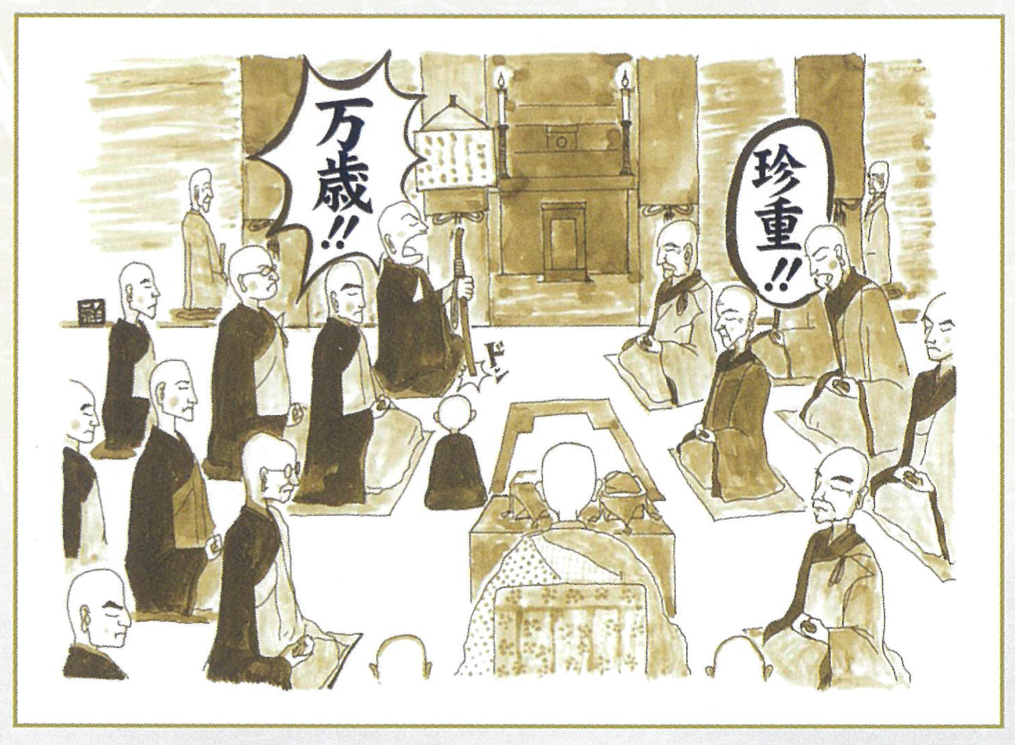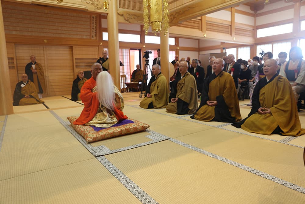 問答のあと、住職は古式にしたがって教えを示し、自省し、お礼の心をあらわします。そして古人がふみおこなった跡を偲び、問答の結びとして儀式は終わります。