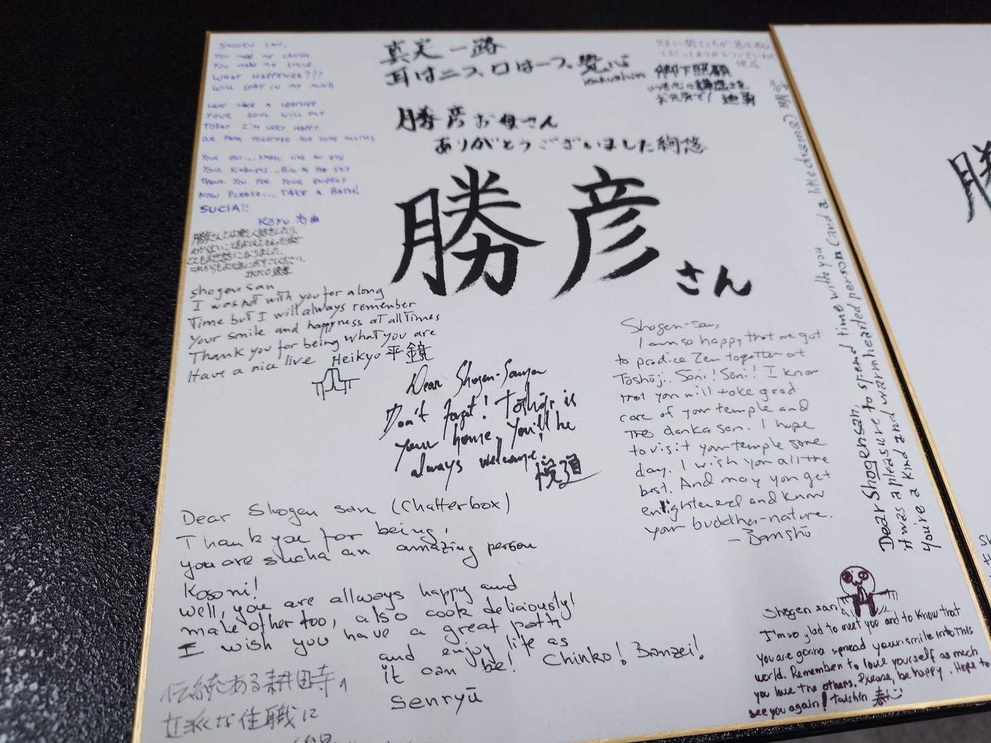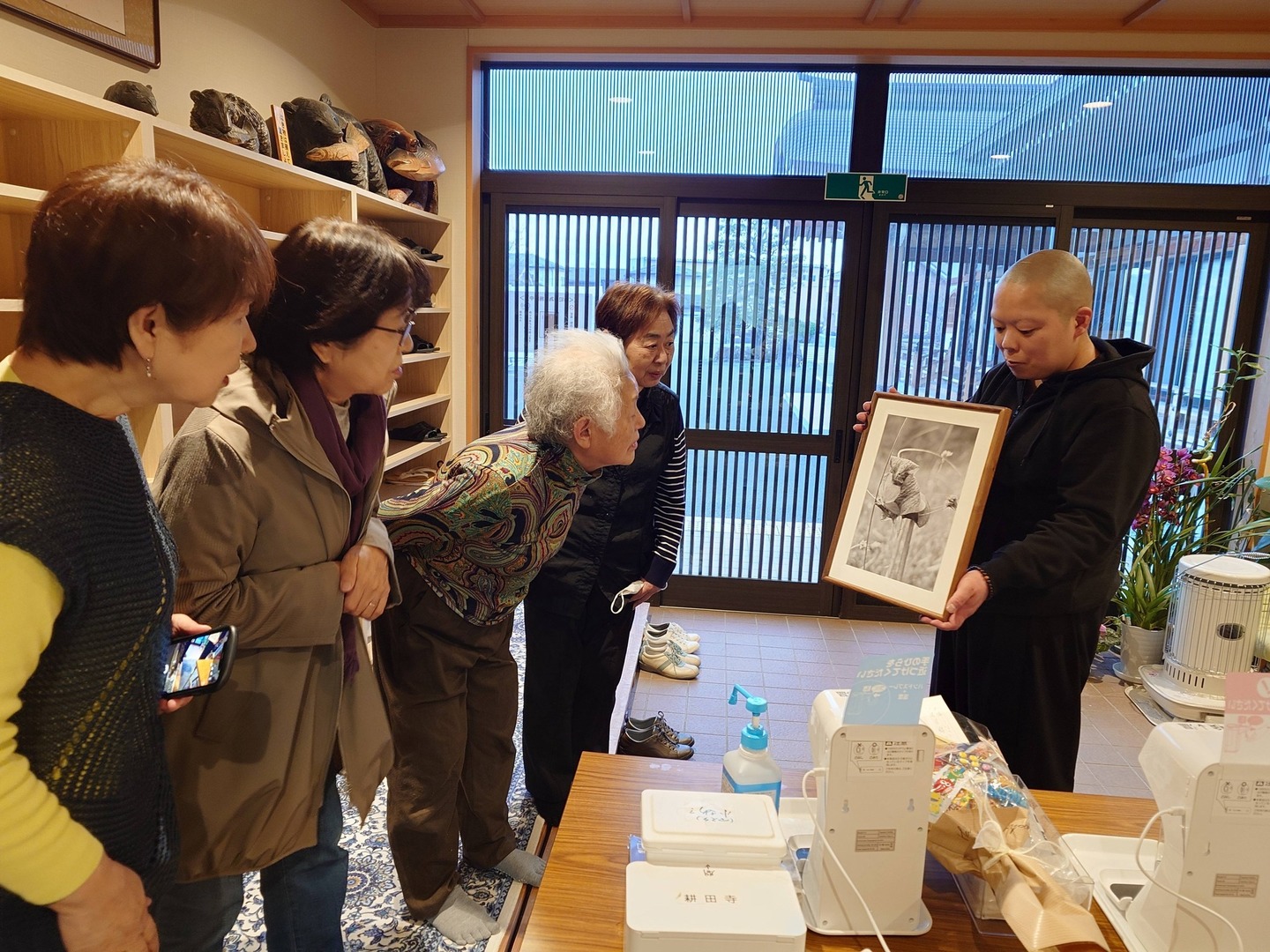まずは寺の玄関にて、堂長様より頂いた写真を大切そうに皆さまへ披露し、その後、本堂にて帰山のご報告のお参りをいたしました。広間では、お茶を囲みながら、ひととき和やかにお話しする時間を持つことができました。